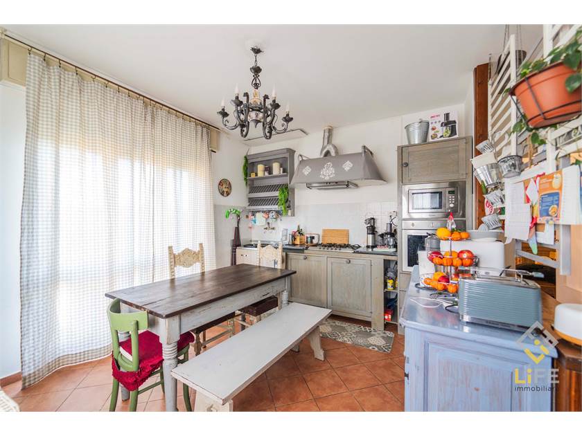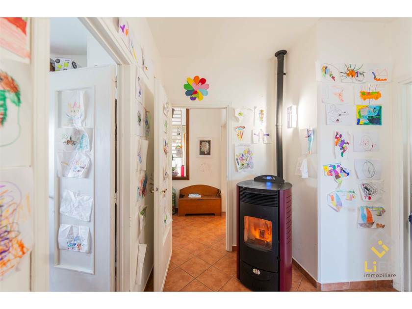 L’ingresso si apre su una zona giorno accogliente, perfetta per vivere la quotidianità o ricevere gli amici. La cucina è separata e abitabile, comoda e funzionale. La zona notte comprende tre camere da letto – una matrimoniale e due singole – che si adattano perfettamente alle esigenze di una famiglia o di chi desidera spazi extra per studio o lavoro da casa. Sono presenti due bagni, ben rifiniti e di comoda metratura.