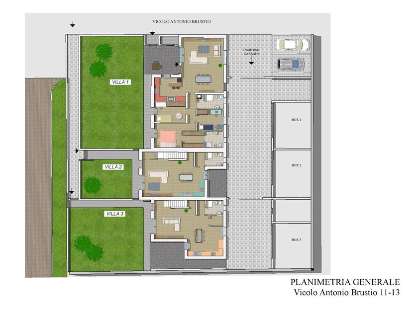 In pieno centro, ma in una tranquilla zona residenziale, nuovissima villetta a schiera completamente autonoma, pronta consegna, con giardino e portico privati.