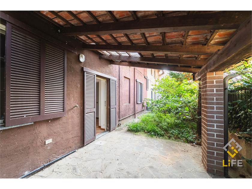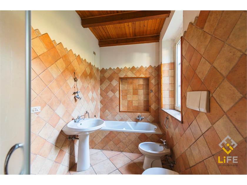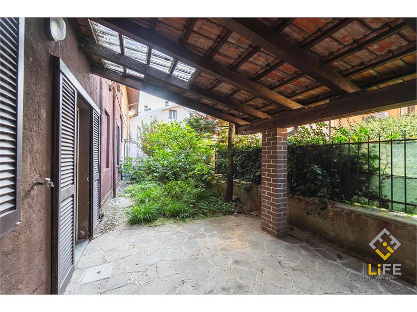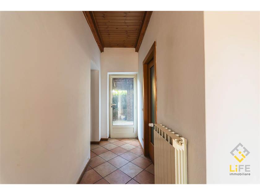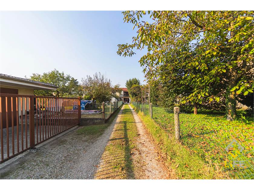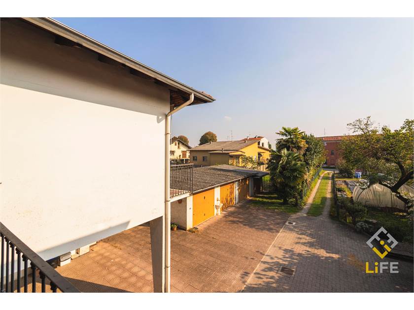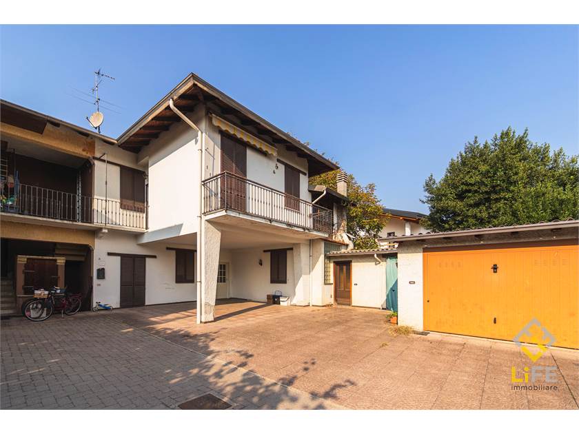 Casa bifamiliare semi indipendente composta da un 3 vani più servizi al piano terra con giardino privato e verandato ed un grande 3 vani più servizi e balcone al piano primo. Area cortilizia di pertinenza e giardino privato.
