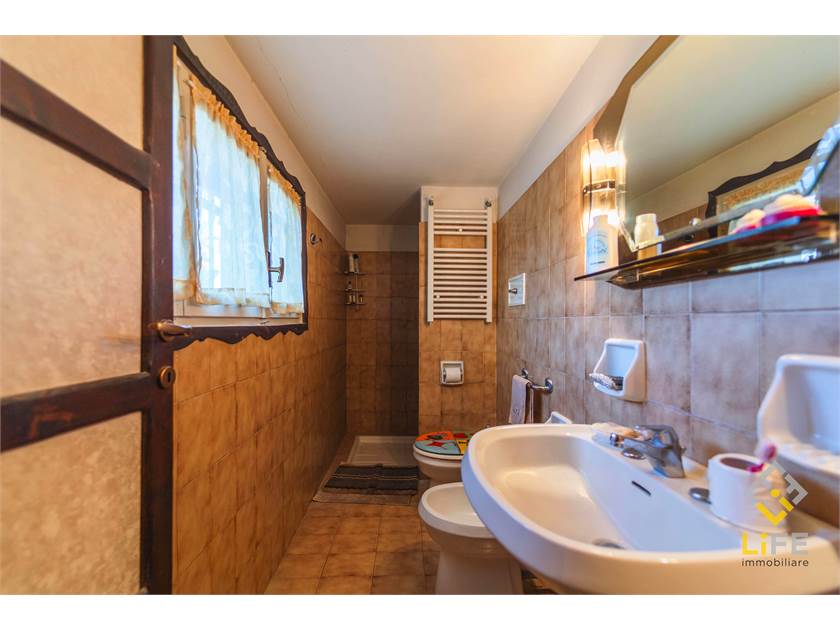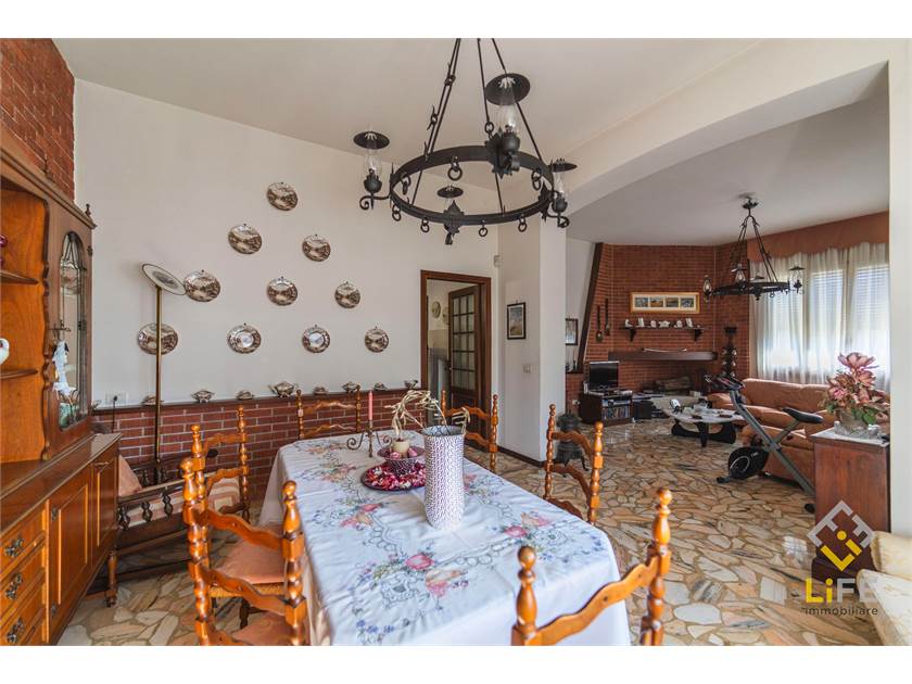 Disposta su tre livelli, offre ambienti luminosi, salone con camino, cucina abitabile, 2 camere da letto, 3 bagni, taverna e sottotetto.