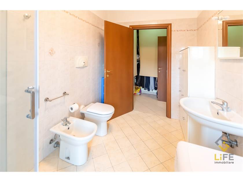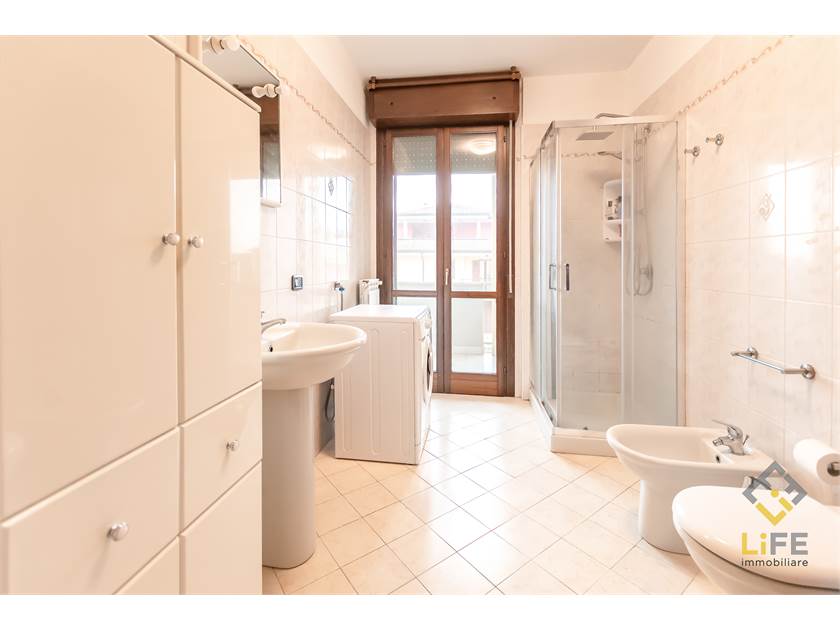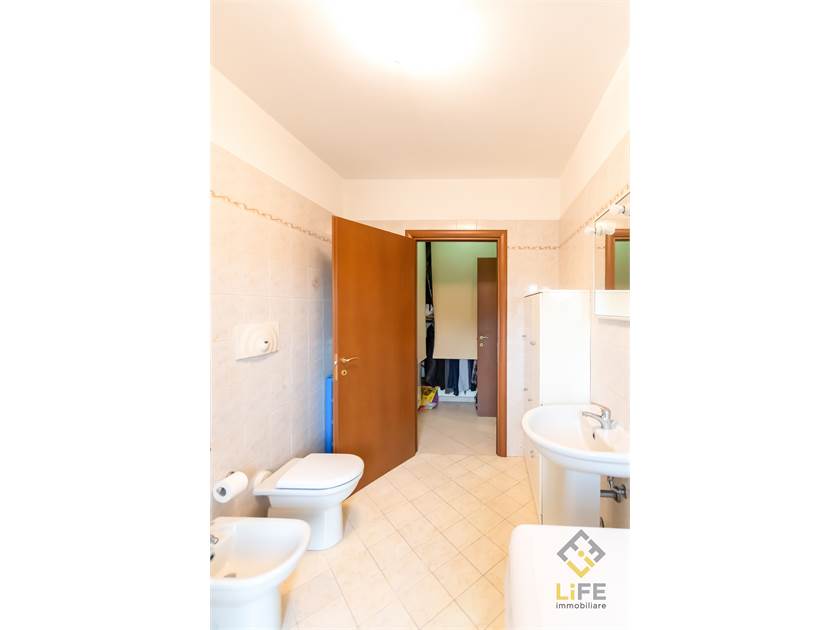 Completa la proprietà un piccolo disimpegno utilizzabile anche come cabina armadio e il bagno, anch’esso con accesso al balcone.