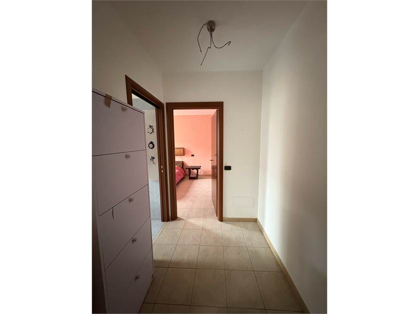 L’ingresso si apre sulla zona giorno con cucina a vista, un ambiente accogliente e ben organizzato. Il disimpegno conduce al bagno finestrato e alla camera matrimoniale, anch’essa di generose dimensioni.
